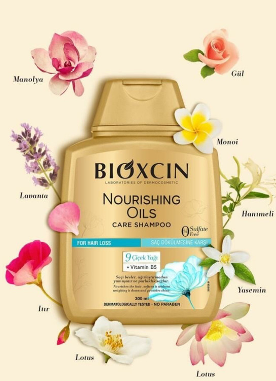 شامپو ضد ریزش روغن 9 گیاه بیوکسین مدل نوریشینگ اویلز NOURISHING OILS توسط متخصصین پوست و مو تست شده و بدون سولفات و فاقد هرگونه مواد حساسیت زا می باشد.