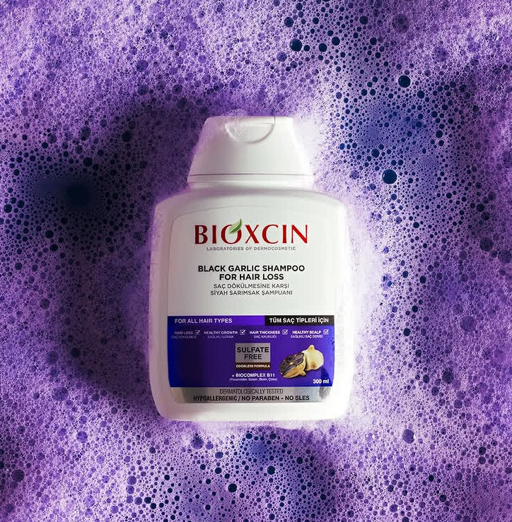شامپوضد ریزش بیوکسین اصل (باضمانت) مدل عصاره سیر سیاه